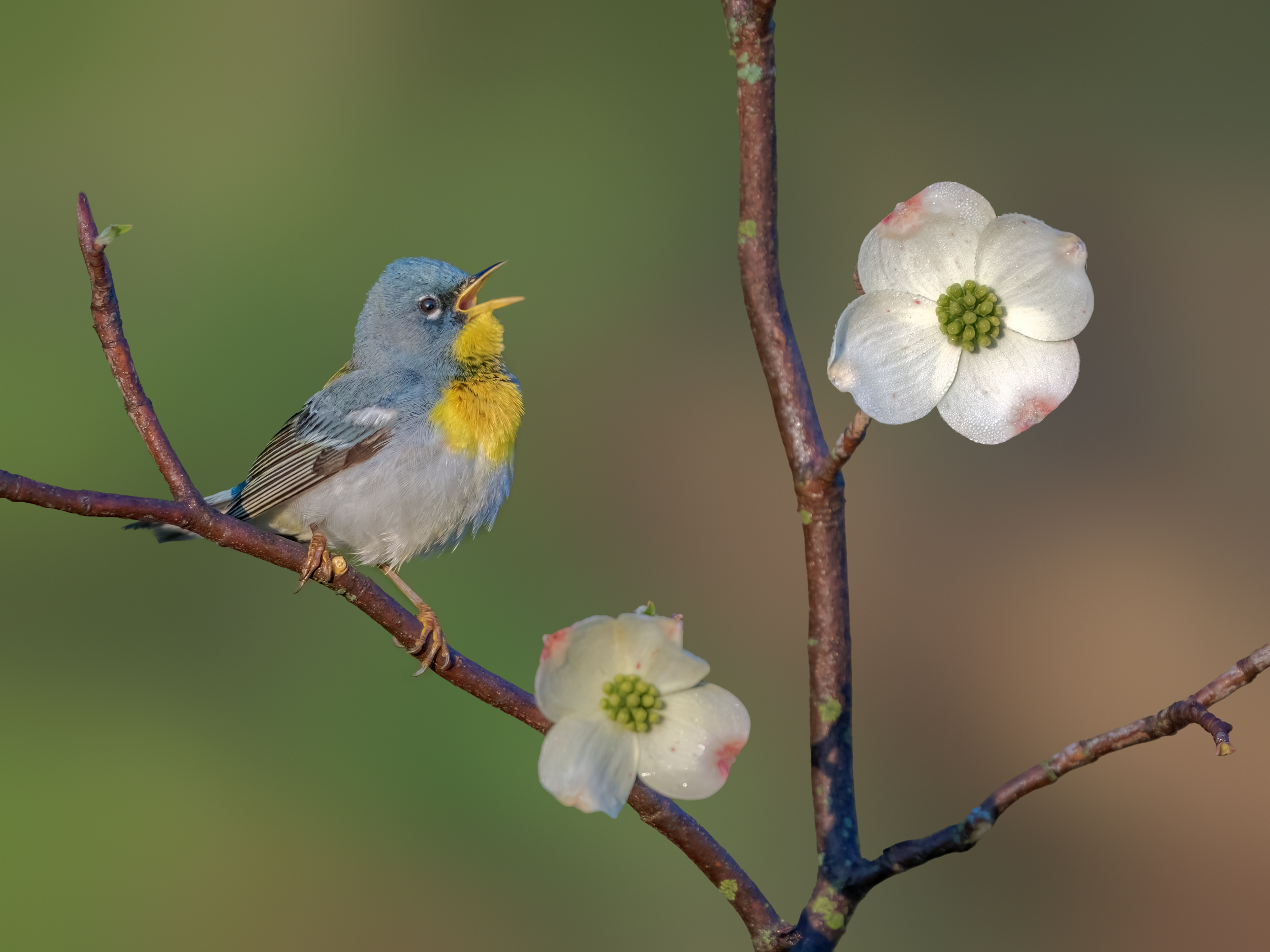 'Northern Parula' Singing Among Wild Dogwood Blossoms